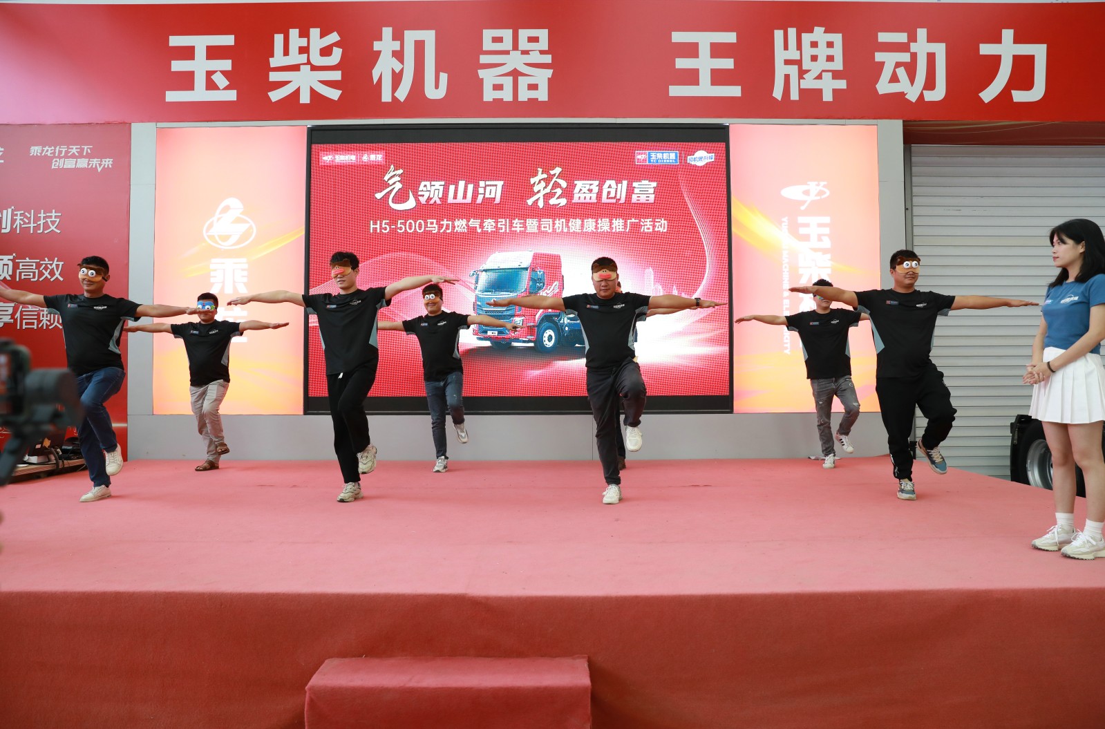 玉柴物流集團聯合品牌公關部開展乘龍H5-500燃氣牽引車推廣暨司機健康操推廣活動