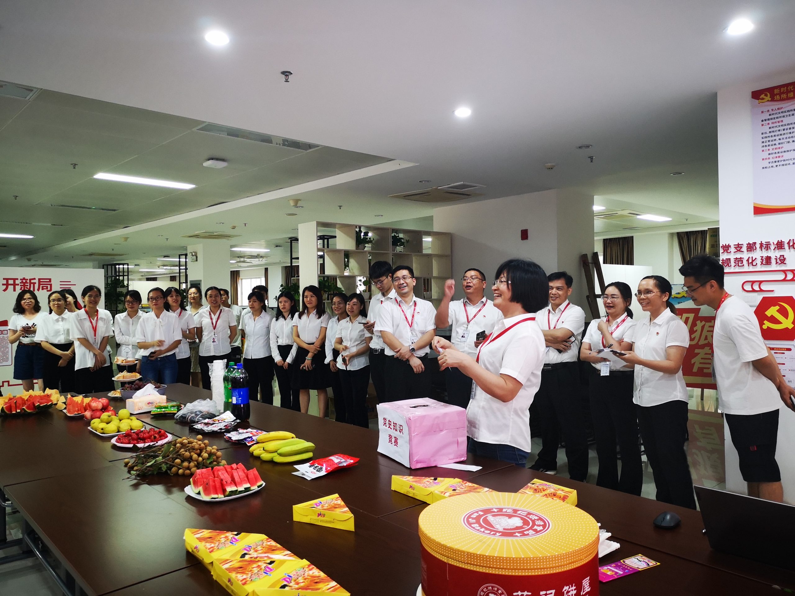 7月1日下午,為深入貫徹黨史學(xué)習(xí)教育,隆重紀念中國共產(chǎn)黨成立100周年,積極踐行學(xué)史力行,學(xué)史增信要求,激發(fā)黨員政治理論學(xué)習(xí)熱情,物流集團黨委組織總部全體黨員及員工開展黨史的知識競賽活動。此次競賽試題涵蓋中國共產(chǎn)黨百年奮斗歷史進程的相關(guān)知識,比賽現(xiàn)場全體參賽人員積極搶答,通過溝通交流,增進對黨歷史知識的了解,公司黨委書記陳德堅等領(lǐng)導(dǎo)班子成員到場參加活動,并為全體黨員送上節(jié)日的問候。